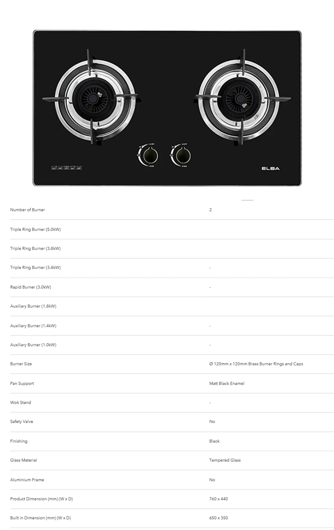 ELBA 2 Burners Glass Stove EGH-M8442G(BK) – High Quality Tempered Glass, Black (4.8kW)