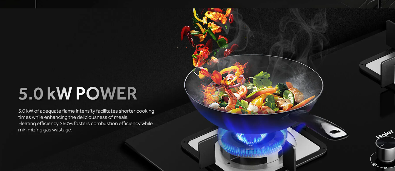 Dual 5.0 kW High-Power Burners: Enjoy professional-grade cooking with two dedicated burners, each generating a massive 5.0 kW of heat. Perfect for rapidly boiling water, high-heat searing, and authentic wok cooking.