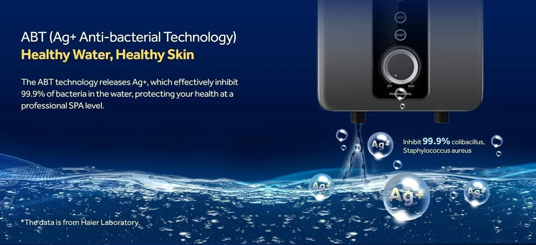 Ag+ Anti-Bacterial (ABT): The water path utilizes silver ions to eliminate up to 99.9% of bacteria, providing cleaner water for your skin and hair.