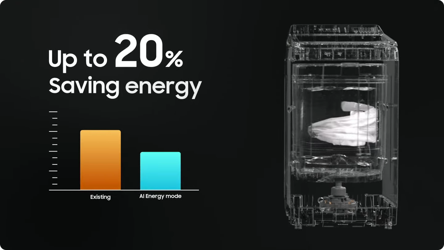 AI Energy Mode (SmartThings): Allows you to monitor and reduce power consumption by up to 20% by optimizing the motor’s operation.