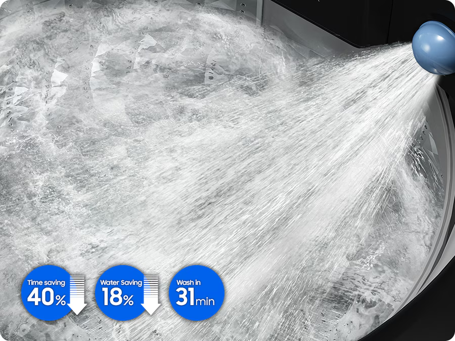 Super Speed: Can finish a full laundry cycle in just 31 minutes by using powerful water jets to accelerate the rinsing process.