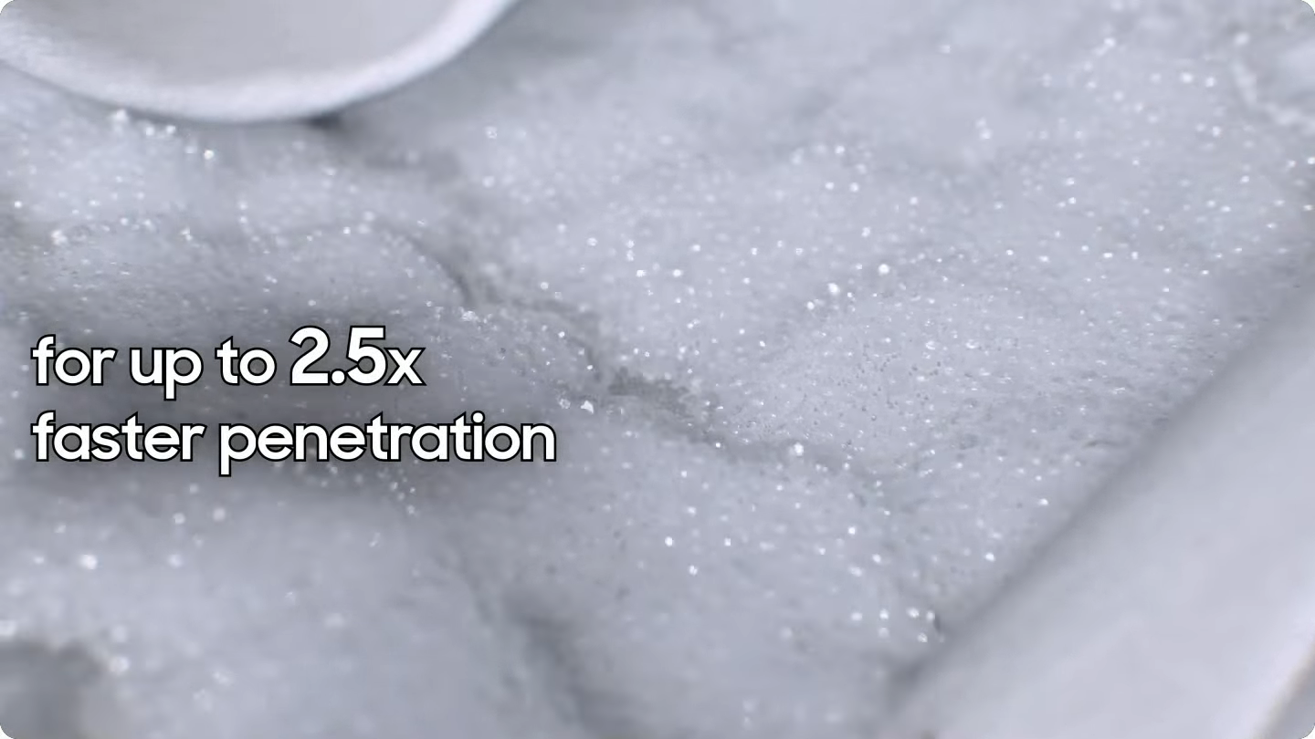 Ecobubble™ with BubbleStorm™: Detergent is dissolved into bubbles that penetrate fabric 2.5x faster than traditional soapy water, allowing for effective cleaning in cold water while using 25% less energy and 14% less water.