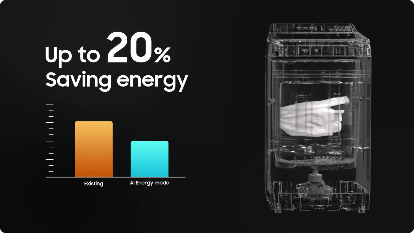 AI Energy Mode (SmartThings): Connects to your smartphone to monitor and reduce electricity consumption by up to 20% using an enhanced motor algorithm.