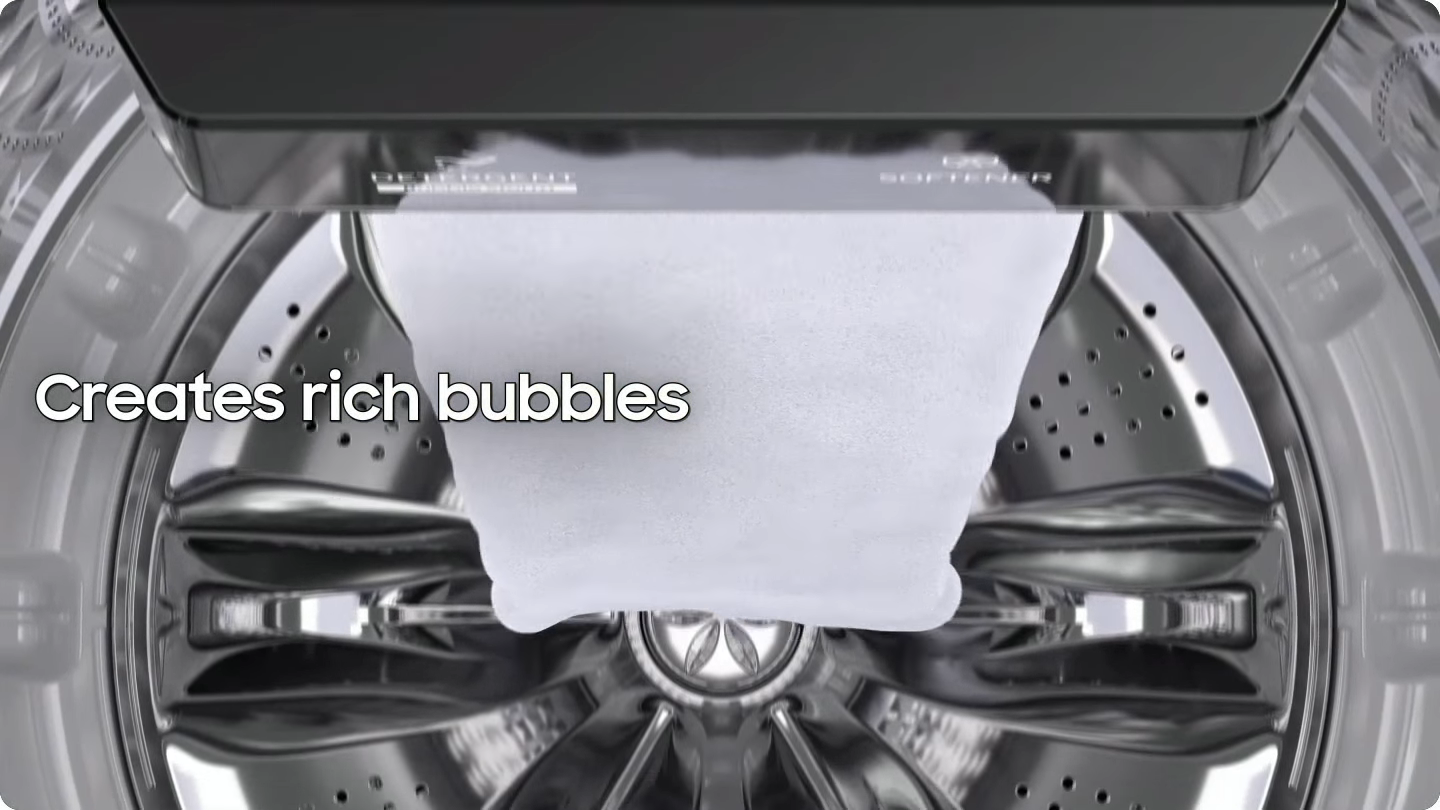 Dual Storm™: Creates a powerful water vortex that mixes clothes and bubbles thoroughly for a deep, consistent clean.