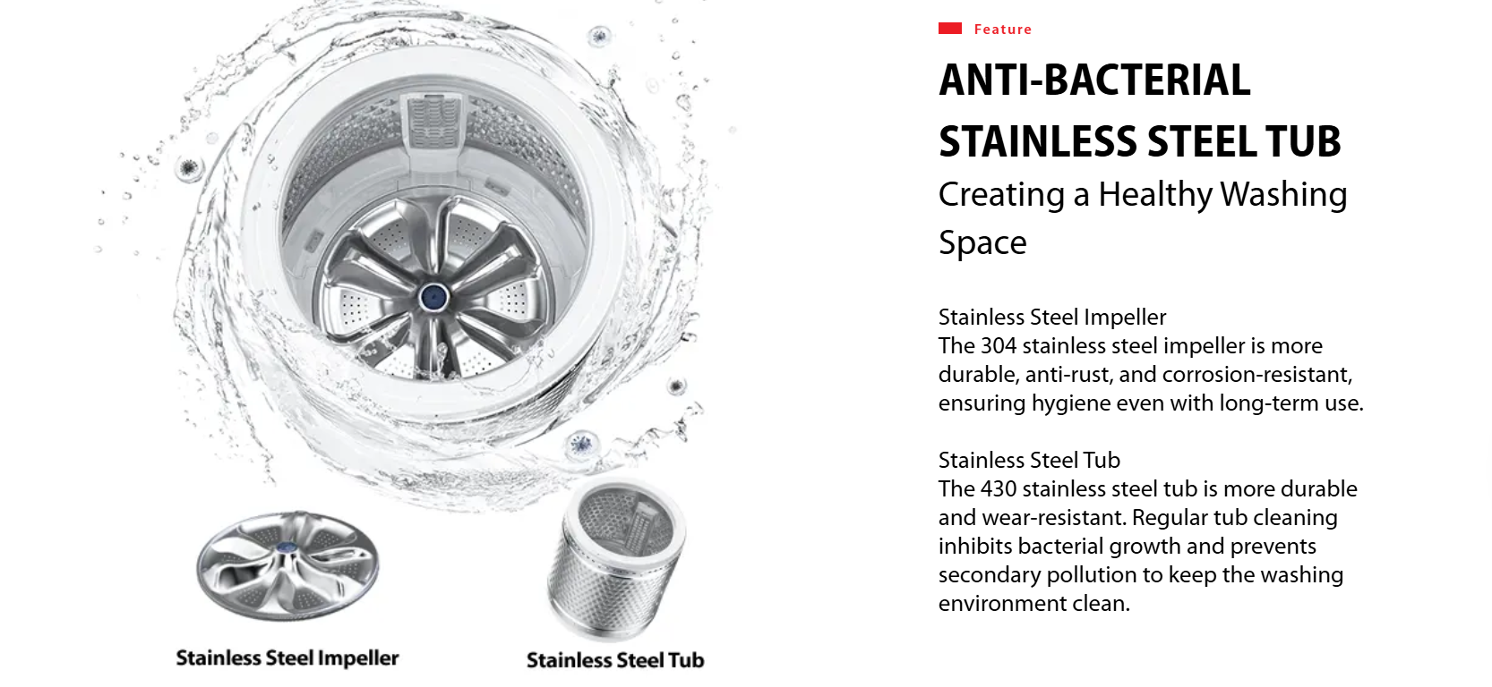 | Tub Type | Anti-Bacterial Stainless Steel |