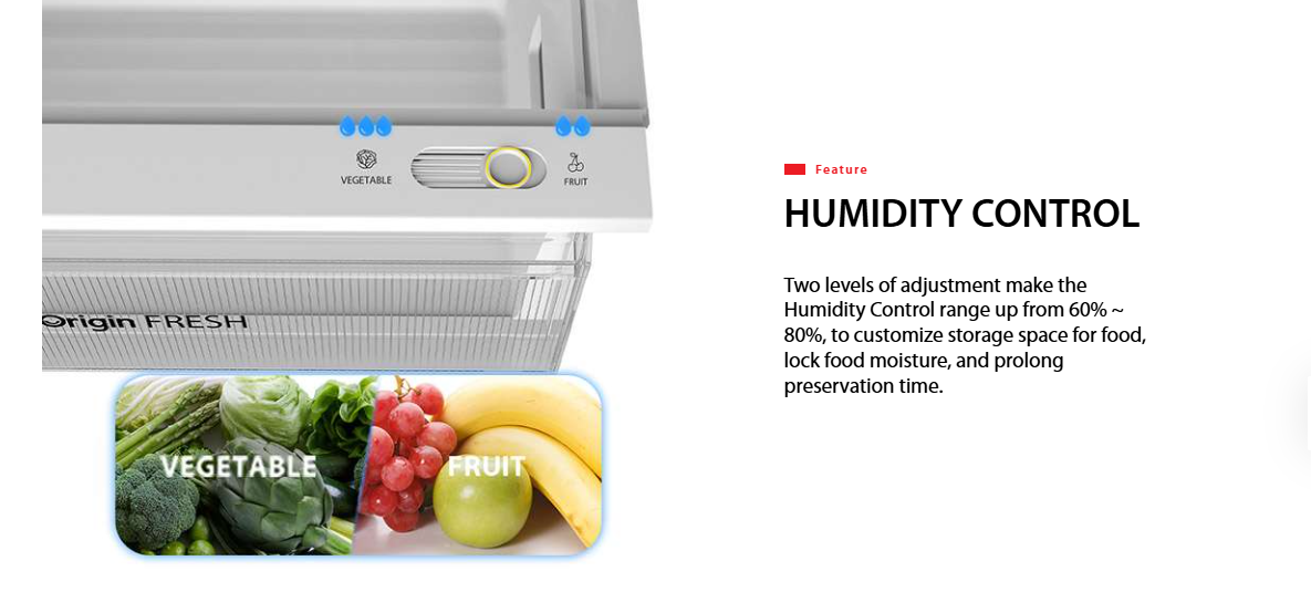 Humidity-Controlled Crisper: A specialized drawer with a manual slider to adjust humidity levels between 60% and 80%, perfect for extending the life of leafy greens and fruits.6