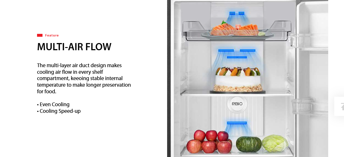 Multi-Air Flow: Multiple vents ensure consistent air circulation in every shelf compartment, preventing “hot spots” and maintaining a stable internal temperature.7