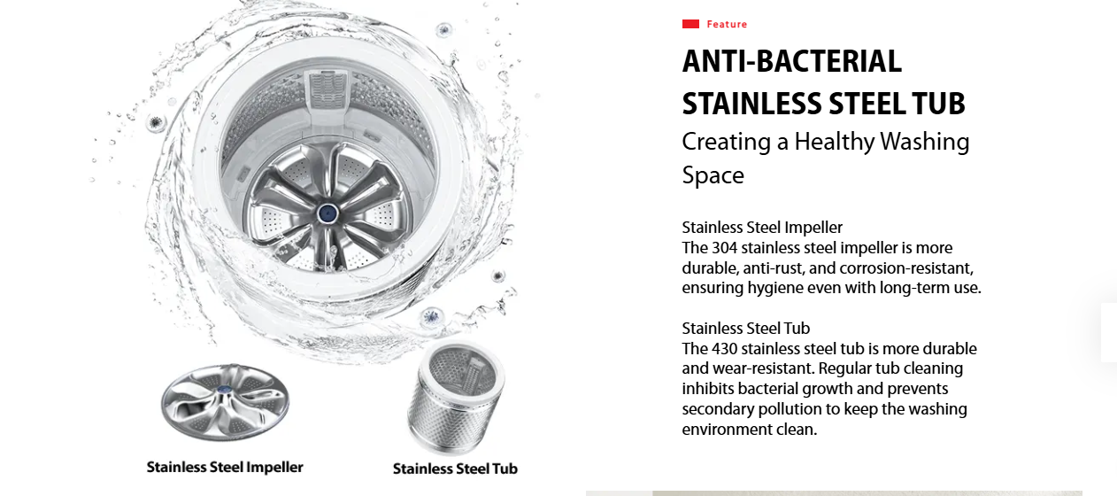 Ag+ Sanitization: Releases Silver ions during the wash to eliminate bacteria and ensure your laundry and the wash drum remain hygienically clean.4